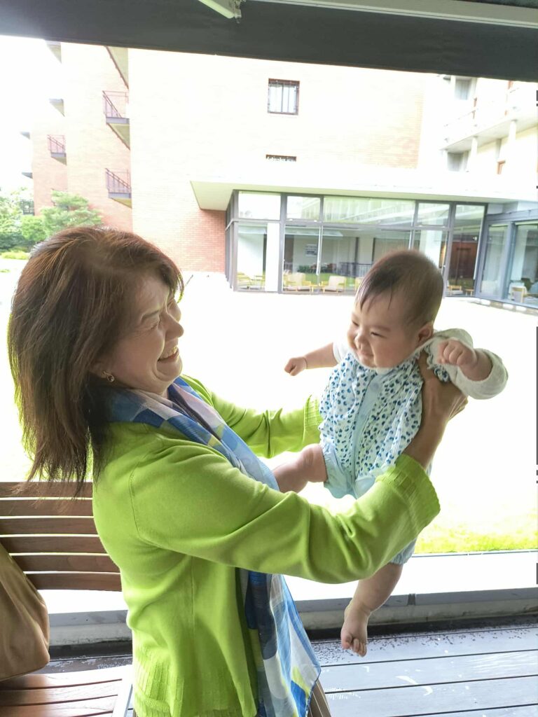 Yさんの旦那さんが赤ちゃんを連れて迎えに来た。