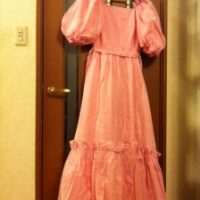 夜部屋の整理をしていたら、 披露宴で着たピンクのドレスが出てきた。 翌朝、処分するしかないかと思いドレスを眺めるが、 せっかくなので着てみた。 もちろんチャックは閉まらなかったが、 シンプルなデザインのせい …